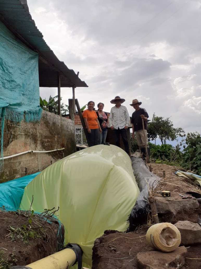 Con los integrantes de las Escuelas Agroalimentarias se realizó un taller de capacitación acerca del montaje de biodigestores de flujo continuo y los beneficios que este genera en la familia campesina y en su entorno, posterior a ese primer encuentro se realizó una minga comunitaria donde se cavó la fosa para la postura del biodigestor, y el 6 de marzo se realizó el montaje del mismo, quedando pendiente la instalación del reservorio y adaptación a la cocina de la familia beneficiaria.